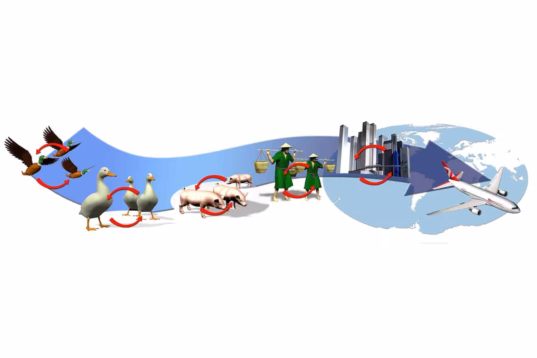 Kuş gribi, ördek, kaz, kuğu gibi göçmen kuşlar tarafından evcil kümes hayvanlarına bulaştırılır. Bu vahşi göçmen kuşlar hiçbir hastalık belirtisi göstermeksizin hastalığı dışkı ve salgıları ile kümes hayvanlarına bulaştırır. Evcil kümes hayvanları ise savunmasız oldukları için hemen hasta olup ölürler.